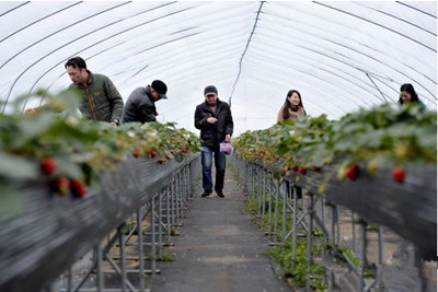 浙江秀洲区“高架草莓”喜获丰收 吸引了周边不少游客前来采摘