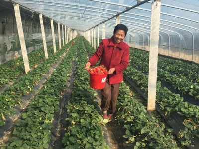 2日,在山东潍坊诸城市皇华镇,村民将成熟的草莓装桶外运。据村民介绍,大棚种植的草莓已经成熟陆续开始上市,目前价格在30元每公斤左右,每个大棚的收入在3万元左右。