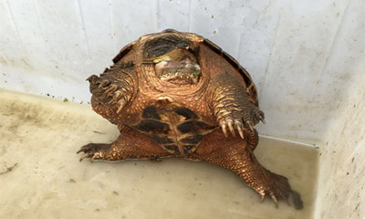3月16日,九江市都昌县网友向江西网九江分站打来电话,称当地渔民捕捞到一只怪异的水产动物,体型巨大、面相狰狞,而且异常凶猛,渔民不知道这是什么动物,也不知道如何处置。记者向渔政部门水产专家核实,这只怪异的水产动物是鳄龟。