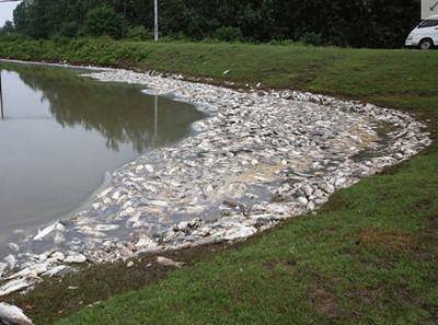 望江县内湖排涝绞死上万条鱼