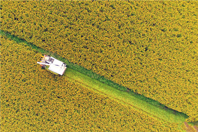 沪上批“国庆稻”规模化收割
