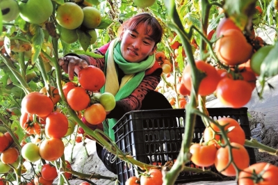11月24日,甘州区梁家墩镇清凉寺村群众在收获西红柿。近年来,该区引导群众大力发展以城郊乡镇为主的设施蔬菜产业,着力推动蔬菜生产向绿色、安全、特色方向发展。