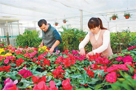 3月18日,在中牟县弘亿现代农业示范园热带花卉温室内,春意盎然,工人正在精心培育花卉幼苗。该园总投资5.2亿元,集高效农业、生态观光、农产品采摘于一体,建有日光温室70余座,培育花卉品种100余种,年产值近2亿元。