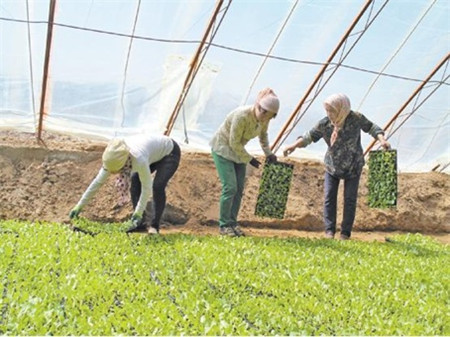 看到宁夏有成功种植色素菊的经验,王保元想将自己的90多栋温室变成育苗基地。有了想法,王保元立即着手与宁夏某农业公司签订订单,育色素菊苗的同时,并育莴笋、苋菜等精细蔬菜苗。经过努力,王保元让色素菊、莴笋和苋菜在自己的温室生根发芽。